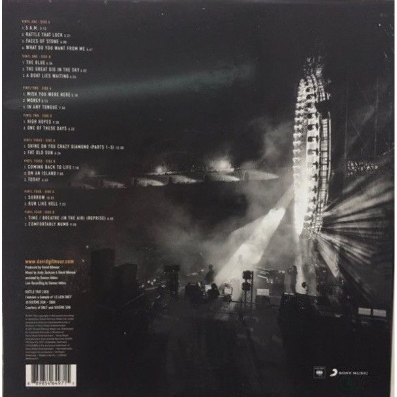 Участники записи альбома Bass, Double Bass, Vocals – Guy Pratt Design – Blade Design Ltd. Drums, Vocals – Steve DiStanislao Guitar, Vocals – Chester Kamen Guitar, Vocals, Producer, Mixed By – David Gilmour Keyboards, Vocals – Chuck Leavell Keyboards, Vocals – Greg Phillinganes Lacquer Cut By – Mandy Parnell Management – One Fifteen Management – Paul Loasby Mixed By – Andy Jackson Mixed By [Assistant], Recorded By [Live] – Damon Iddins Photography By – Anna Wloch Photography By – Sarah Lee (3) Photography By, Art Direction – Gavin Elder Photography By, Creative Director – Polly Samson Saxophone, Guitar – Joao Mello Vocals – Bryan Chambers Vocals – Louise Clare Marshall Vocals – Shari J Jules