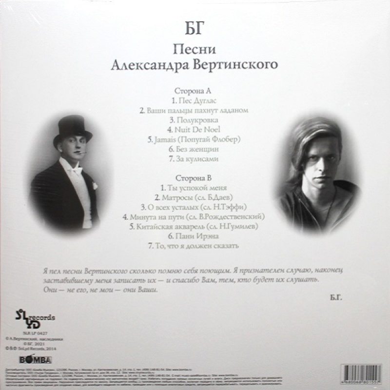 Альбом лучших песен из репертуара Александра Вертинского в исполнении Бориса Гребенщикова, вышедший впервые в 1994 году.