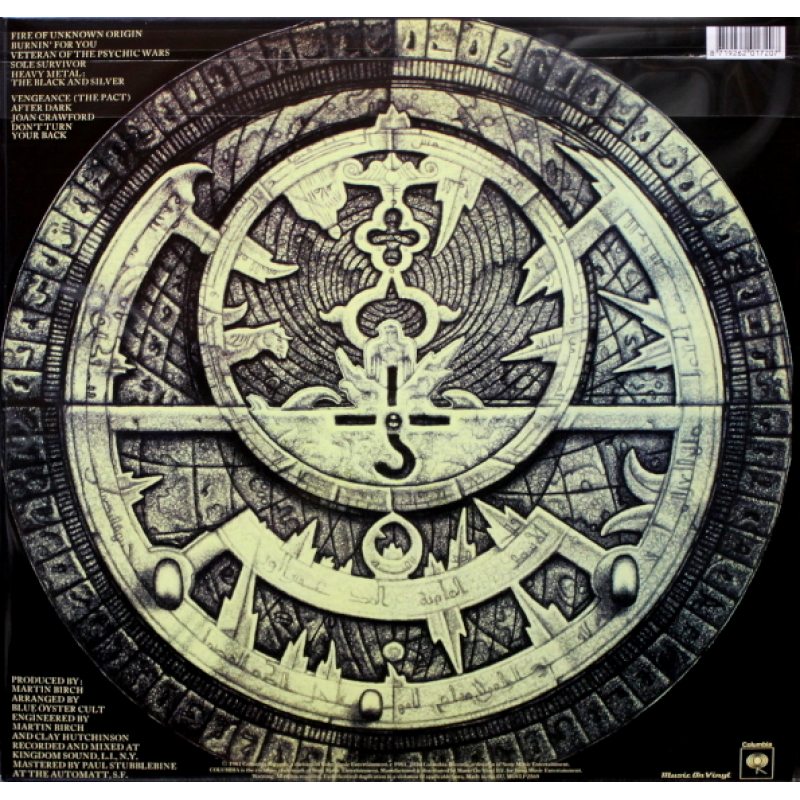 "Fire Of Unknown Origin" - студийный альбом американской хард-рок-группы Blue Oyster Cult, выпущенный в 1981 году. Альбом, включающий в себя успешный в Top 40 хит "Burnin' for You" (1 место в Billboard’s Album Rock Tracks chart) ознаменовал возрождение коммерческого успеха, после двух альбомов с неутешительными продажами. Также "Fire Of Unknown Origin" является последним студийным альбомом, записанным оригинальным составом группы; во время последующего тура, группа уволила оригинального барабанщика Альберта Бушарда. Альбом продолжает тенденцию BÖC в плане написания необычных песен, начиная от заглавного трека (написанного в соавторстве с Патти Смит) до "Joan Crawford". Часть песен была предназначена для саундтрека анимационного фильма Тяжёлый металл", включая "Vengeance (The Pact)", в тексте которого подробно описывается сюжет сегмента фильма "Taarna". Тем не менее только написанная в соавторстве с писателем научной фантастики Майклом Муркоком песня "Veteran Of The Psychic Warsruen" (по иронии судьбы не предназначенная для фильма) смогла попасть в саундтрек окончательной версии фильма. Закрывающий трек альбома, "Don’t Turn Your Back" стал последним вкладом Аллена Ланьера в написании песен Blue Öyster Cult; впервые он был исполнен группой 17 июня 2016 года на специальном концерте, посвящённом творчеству Ланьера.