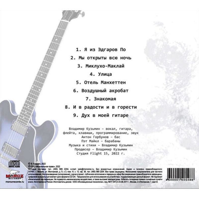 "Дух В Моей Гитаре" - студийный сольный альбом 2022 года певца и музыканта Владимира Кузьмина. Издание содержит девять треков со смыслом, в которых поется о любви, музыке, поисках себя и человеческих пороках.