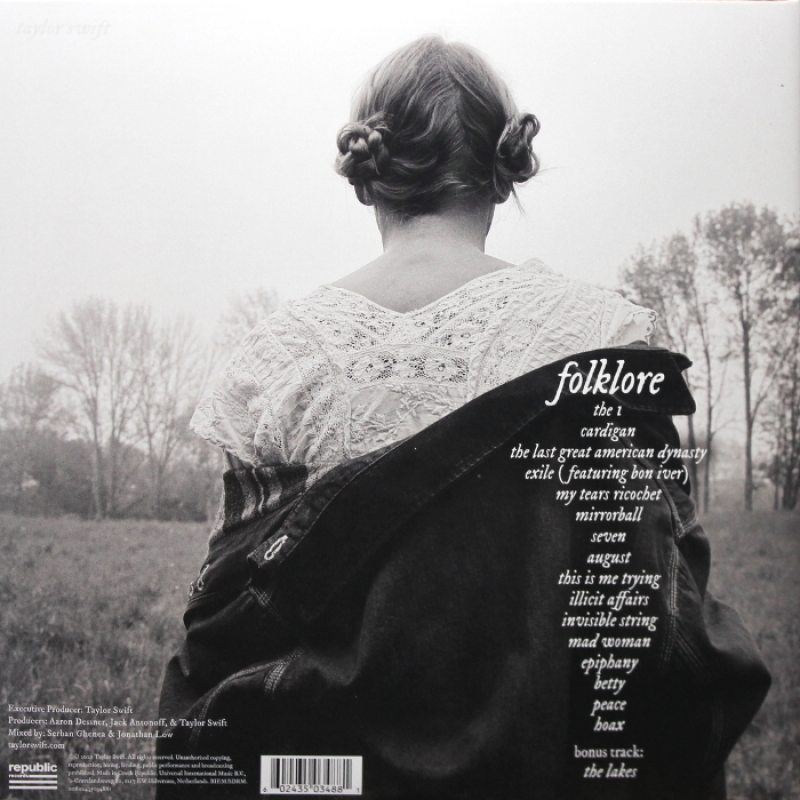 "Folklore" - студийный альбом 2020 года американской исполнительницы Тейлор Свифт. Альбом был создан Свифт в условиях самоизоляции во время пандемии COVID-19 с помощью продюсера Аарона Десснера и при участии её давнего партнёра Джека Антоноффа. Это "неожиданный" альбом, ставший сюрпризом для фанатов, так как был анонсирован в социальных сетях всего за несколько часов до выхода. В отличие от поп-звучания предыдущих релизов Свифт, Folklore - это инди-фолк, альтернативный рок и электро-фолк, с преобладанием фортепиано и гитар. Музыкальные критики и обозреватели дали положительные отзывы и высокую оценку новому релизу. Альбом дебютировал на первом месте в хит-парадах США (где стал седьмым подряд чарттоппером), Австралии, Бельгии, Великобритании, Ирландии, Новой Зеландии и Норвегии. В США Свифт стала первым в истории музыкантом, у которого в одну неделю на первых местах одновременно дебютировали и альбом (в Billboard 200) и сингл. Трек "Cardigan" сразу возглавил Billboard Hot 100, став шестым чарттоппером Свифт в США. Все 16 треков с альбома одновременно дебютировали в Billboard Hot 100, с тремя из них в лучшей десятке top-10 (включая "The 1" и "Exile" на 4-м и 6-м местах, соответственно).